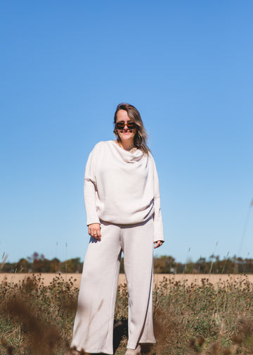 Pantalon jambe large beige
