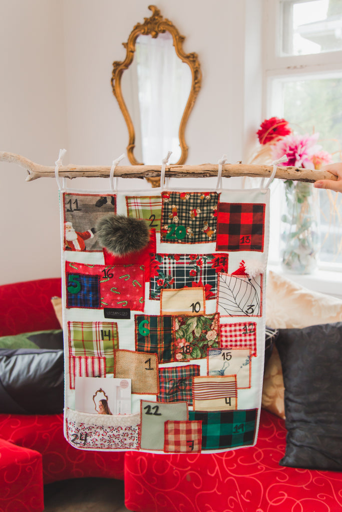 Notre calendrier de l’Avent, composé de 24 poches, est conçu avec des retailles de tissu, offrant une touche unique et écoresponsable à votre décoration de Noël.
